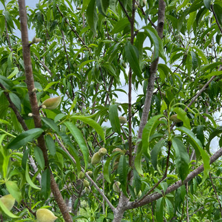 The farm is hot but fortunately we are still green. Fingers crossed we get some rain this next week. The ducklings have been moved to their new pen. The baby turkeys and chicks are growing like weeds. The peach trees and the tomatoes appear to have a bumper crop this year. And Alex the bull says Moooo!