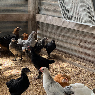 I added a picture of the kids herding ducks and geese down to the pond for a morning swim. We received just enough rain last week for the Rain lilies to come out and show their pretty petals. You can see in the picture with the Momma Cows it has greened up a bit and the chickens like their fans.